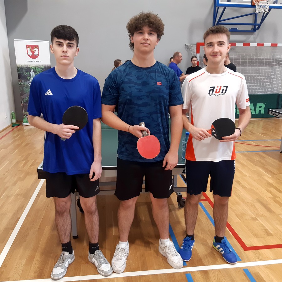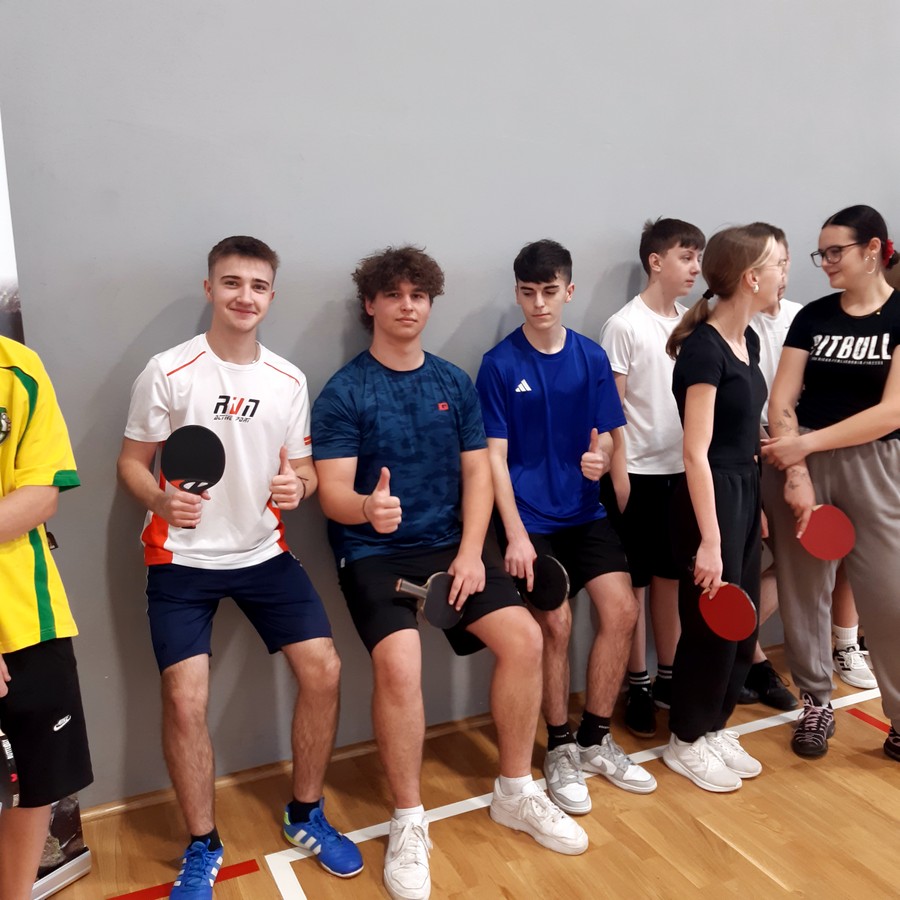 Ostatecznie piąte miejsce w drużynowych zawodach w tenisie stołowym zajęła nasza drużyna męska - Kawa Jakub, Jędrzejowski Jakub, Pierz Samuel.