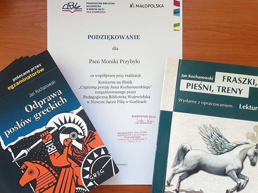 Uczniowie Zespołu Szkół Ekonomicznych: Szymon Zieliński z klasy IIId, Jakub Kawa i Karol Kulka z klasy Vb zajęli I miejsce w konkursie na film CZYTAMY POEZJĘ JANA KOCHANOWSKIEGO.Była to już II edycja zmagań (w roku szkolnym 2024/2025 Oliwia Piecuch i Jakub Jędrzejowski zajęli II miejsce w konkursie na film CZYTAMY "KORDIANA" SŁOWACKIEGO).