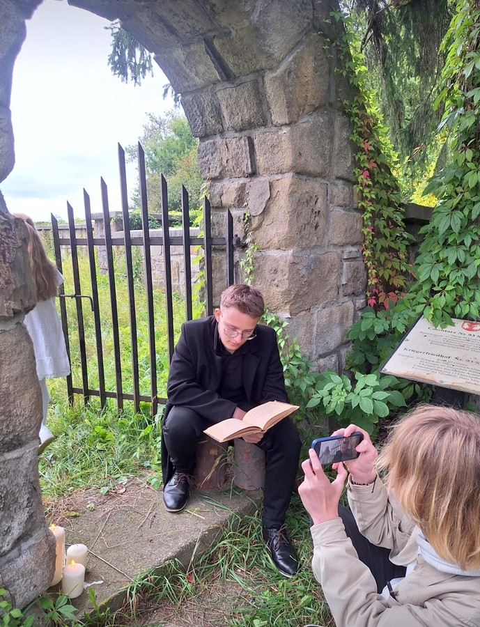 Komisja w składzie: pani Beata Krok (kierownik PBW Filii w Gorlicach), pan Piotr Gajda (inspektor Wydziału Spraw Społecznych UM w Gorlicach), pani Małgorzata Romańska (nauczyciel bibliotekarz PBW Filii w Gorlicach) oraz pan Teodor Włosek (fotografik, pracownik Wydziału Informacji i Promocji UM w Gorlicach) doceniła kreatywność naszych uczniów i walory artystyczne filmu. Okolica cmentarza w Stróżówce okazała się idealnym tłem do zaprezentowania "Trenu X". Funeralny klimat podkreśliła obecność ducha Urszulki - w tej roli wystąpiła Lena Romaniak, czytał - Szymon Zieliński, oprawa muzyczna - Jakub Kawa, montaż - Karol Kulka.