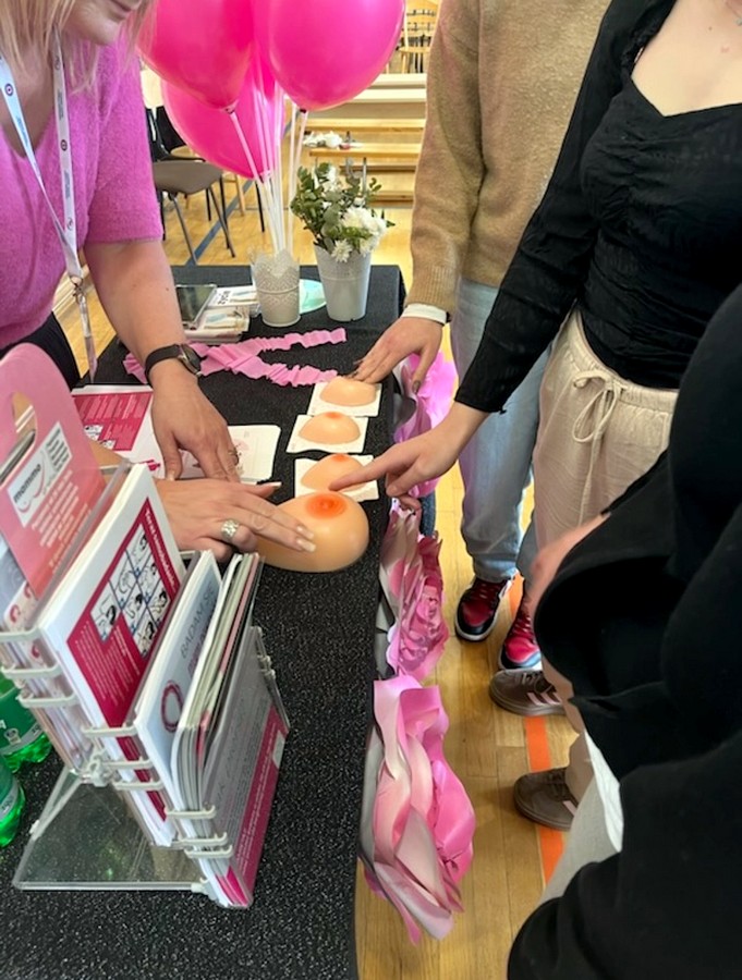 Młodzież uczestnicząca w wykładach mogła ćwiczyć badanie piersi na fantomach, w które zaopatrzyły nas Panie z PSSE w Gorlicach.
