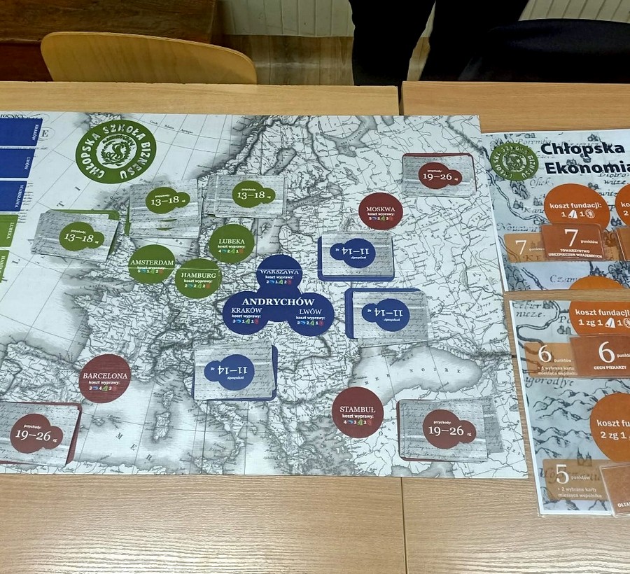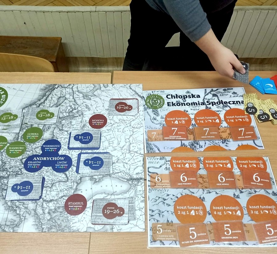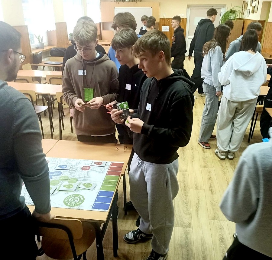 31 marca 2026 podczas spotkania z pracownikiem samorządowym z ROPS uczniowie klasy 1c zagrali w grę planszową, która pozwalała w przyjazny i zabawny sposób zrozumieć zasady rządzące ekonomią społeczną.